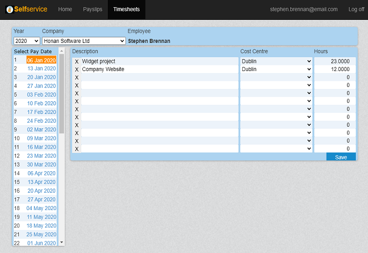 The Self Service utility allows employees to enter their own hours via any web browser. This data can then be easily imported to Cloudpay.