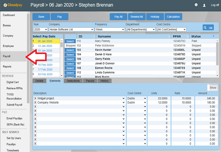 You can do this from your Dashboard screen: https://www.cloudpay.ie/Dashboard