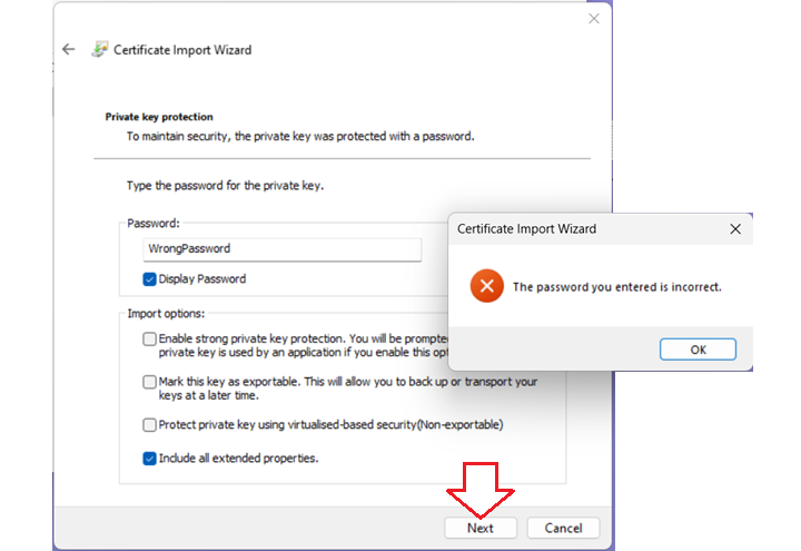 When downloading the certificate from ROS, be careful that you do not mix it up with an old digital certificate that you previously downloaded. This is a common problem. You might need to clear your browser cache and rename the certificate file to stop this from happening.