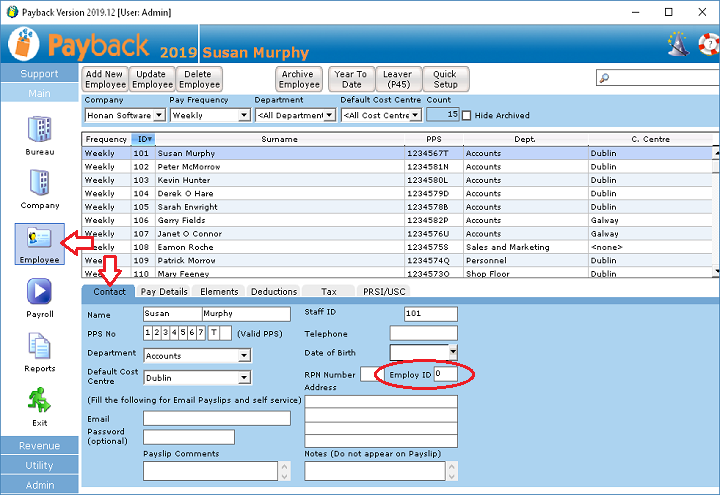 Note: You should not change an employment ID for a current employment once an Employment ID is notified to Revenue. Each time a payroll submission is made with a different or new Employment ID a new employment is created on Revenue systems for that employee.