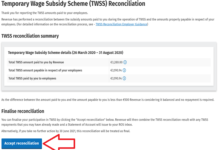 Revenue have instructed that all employers who availed of TWSS should complete this phase by reviewing their subsidy data, make any corrections and accept the reconciliation balance.