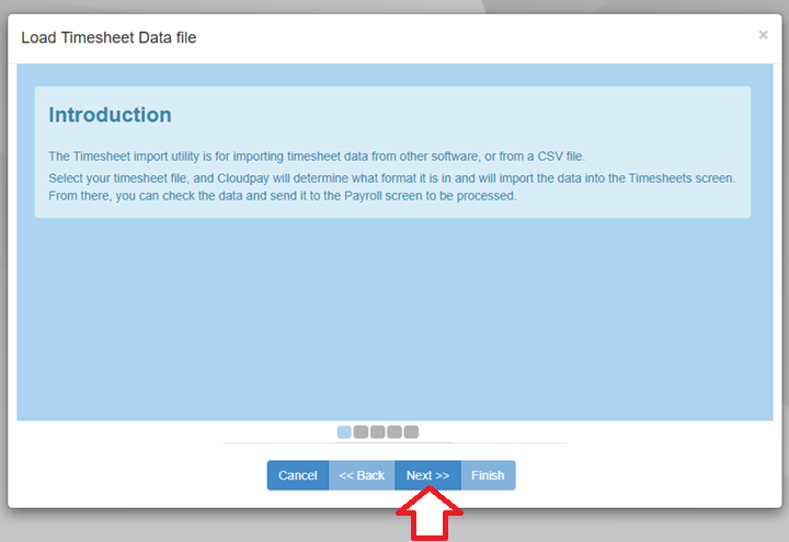 Cloudpay analyses your file to see if it is in any accepted format of Timesheets software. If it can't find a specific format, you can still import your file by clicking the 'Next' button.