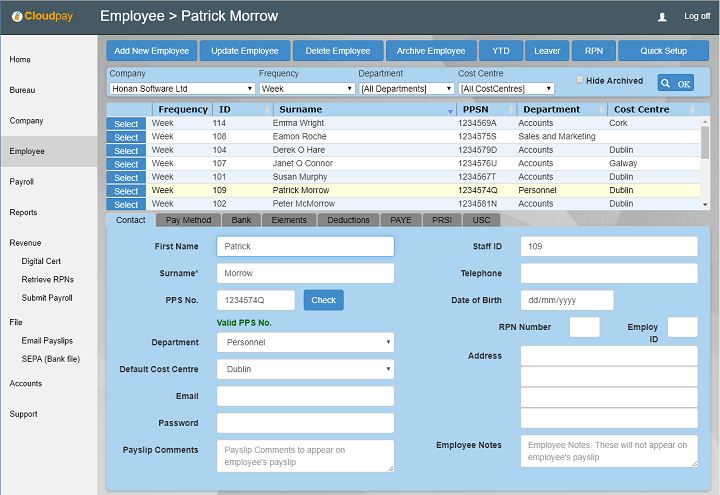 Employees who have left stay on the Revenue RPN server until the end of the year they left. Revenue will not remove these employees.