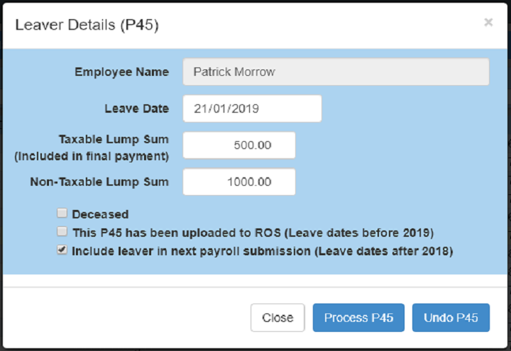 For PAYE Modernisation, the P45 process has changed. You only need to include a leave date for the employee.