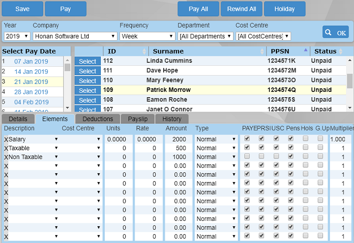 In the Payroll screen, add the appropriate taxable and/or non-taxable elements for the payment. Make sure that you untick PAYE, PRSI and USC for non-taxable lump sums.