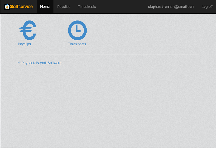 When the employee logs in, they will see the Self Service menu. Depending on what permissions were selected in the https://www.cloudpay.ie/SelfService/UserLogin screen, they will either see the Payslips, Timesheets or both options.