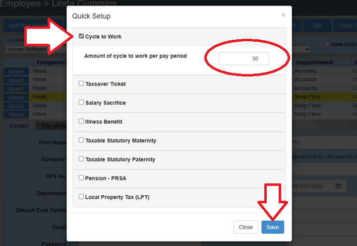 Select the Employee you wish to set up the Cycle to Work for in the Employee Screen. At the top of the screen, click the Quick Setup button