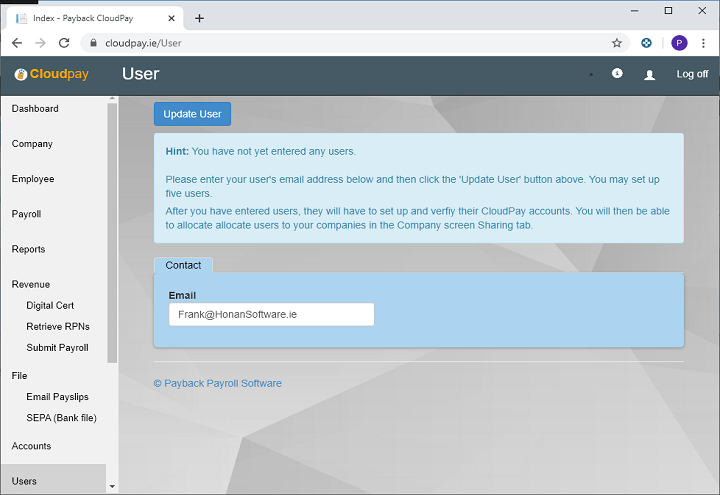 If more than one person needs to access your CloudPay account, then Users can be set up.