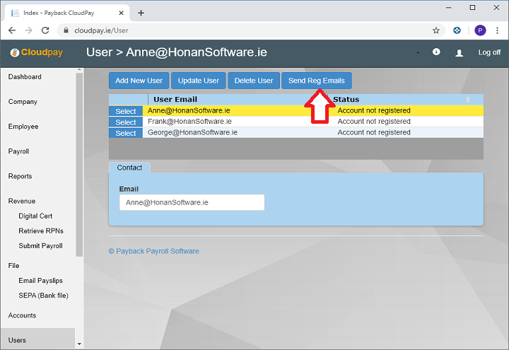 1. Go to the User screen: https://www.cloudpay.ie/User