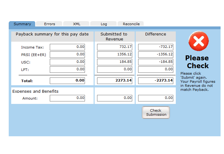 Here we can see that the 'Payback Summary' figures do not match the 'Submitted to Revenue' figures.