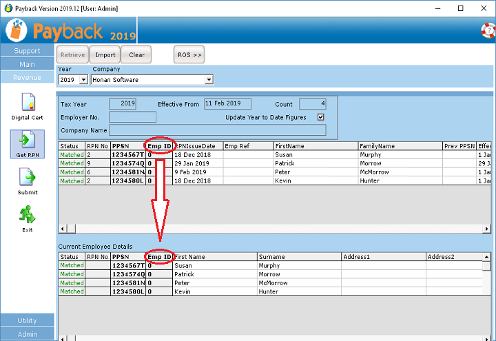 Note: You should not change an employment ID for a current employment once an Employment ID is notified to Revenue. Each time a payroll submission is made with a different or new Employment ID a new employment is created on Revenue systems for that employee.
