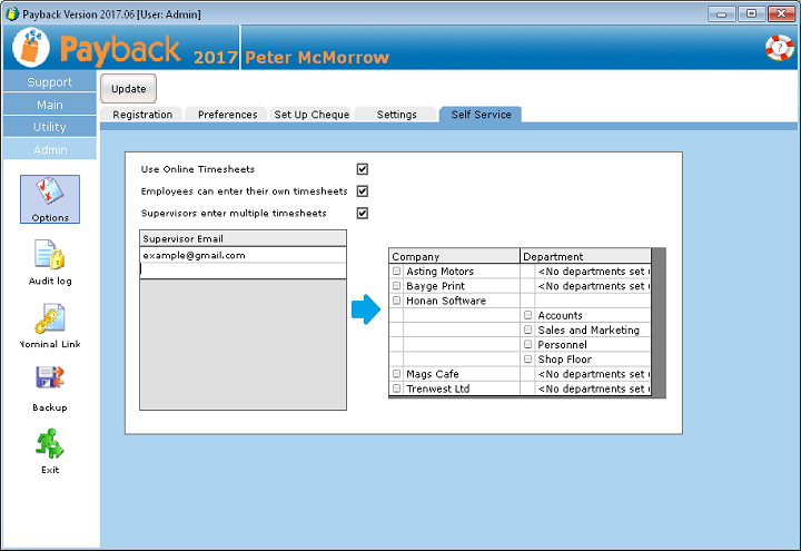 From version 2017.06 onwards, Payback has a fully integrated self service facility.
