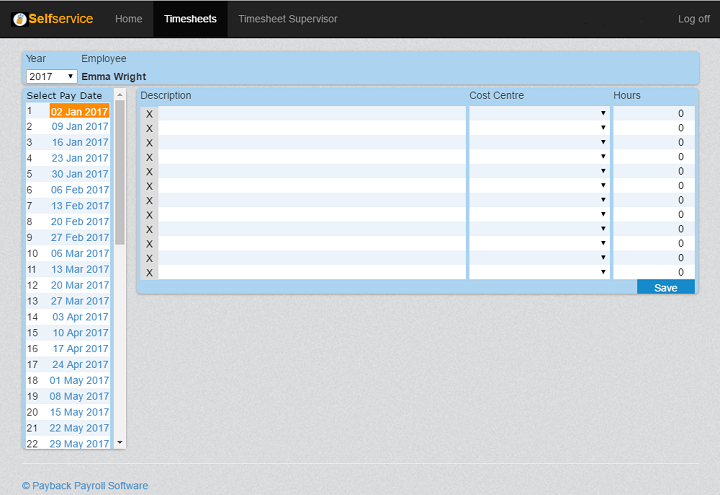 Using this, employees can view their payslips online and enter timesheets remotely. Supervisors can enter timesheets in bulk, for multiple users. All the data is stored securely in the Cloud.